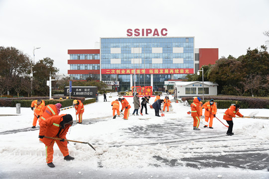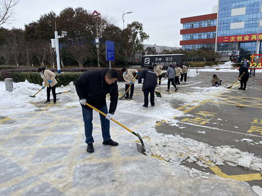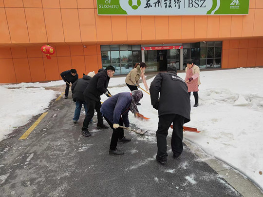 一場(chǎng)大雪,把蘇宿園區(qū)裝點(diǎn)得銀裝素裹,卻給群眾出行帶來(lái)了很大不便。為保證居民安全出行,建發(fā)公司全體職工參與園區(qū)及各物業(yè)項(xiàng)目道路掃雪除冰工作,奏響全員鏟冰除雪“進(jìn)行曲”。